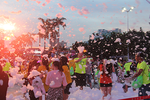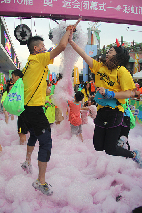 (2016年7月16日——廣州)7月16日,在2016巴西里約奧運會即將開幕的熱烈氛圍下,廣州的5號停機坪購物廣場被“彩色”引爆。奧園集團第10屆“奧”運會閉幕式——彩虹泡泡跑熱鬧開跑,現場吸引了超過1000人參加。