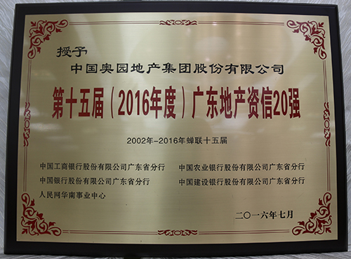 奧園集團(tuán)連續(xù)十五年蟬聯(lián)“廣東地產(chǎn)資信20強(qiáng)”