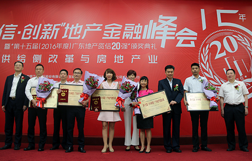 (2016年7月6日——廣州)2016年7月6日,“資信”地產(chǎn)金融峰會(huì)暨“第十五屆(2016年度)廣東地產(chǎn)資信20強(qiáng)”頒獎(jiǎng)典禮在廣東珠島賓館隆重召開。該峰會(huì)由工商銀行、農(nóng)業(yè)銀行、中國(guó)銀行及建設(shè)銀行四大行廣東省分行攜人民網(wǎng)主辦、中國(guó)地產(chǎn)資信強(qiáng)企交流會(huì)承辦,工、農(nóng)、中、建四大國(guó)有銀行廣東省分行主管行領(lǐng)導(dǎo),清華大學(xué)房地產(chǎn)研究中心主任及房地產(chǎn)相關(guān)企業(yè)負(fù)責(zé)人出席了本次頒獎(jiǎng)典禮。