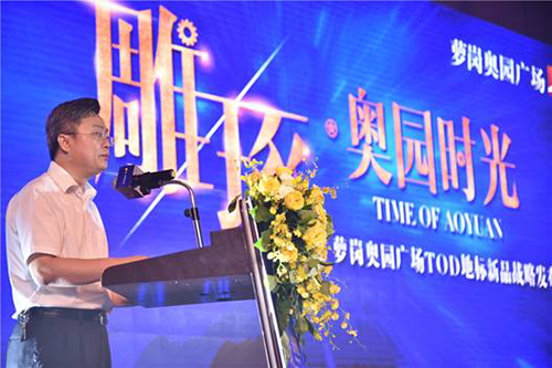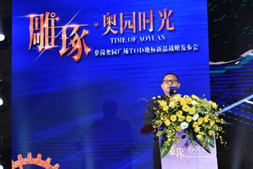 奧園集團(tuán)總裁助理高向東介紹蘿崗?qiáng)W園廣場(chǎng)寫字樓