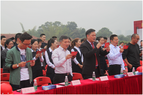 隨后,梅州奧園人集體宣誓,定將盡心盡責、全力以赴、鑄就精品,為梅州人民建設美好家園!響徹云霄的誓言激蕩著天地,也讓我們堅信在全體梅州奧園人的努力下,天悅灣項目定能成為梅州市民的美好家園。