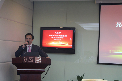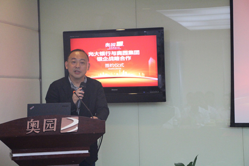 光大銀行廣州分行黨委書記、行長韓學智先生在致辭中表示, 光大銀行自2007年作為國內第一家國家持股的金融控股公司,并成功獲得中央匯金投資有限責任公司注資200億元人民幣,資本實力雄厚。發展至今,光大集團已位列世界500強第313位。光大銀行在為廣大個人和社會提供優質金融服務之時,經營業績不斷提高,在公司業務、資金業務、投行業務、理財業務、電子銀行等方面培育了鮮明的競爭優勢。韓學智行長強調,奧園集團自1996年以來,始終保持高速穩健發展,綜合實力不斷增強,已成為全國房地產企業的先進典范,是中國首個復合地產的締造者,具備強大的可持續發展能力。光大銀行將充分運用金融控股集團的先發優勢,為奧園集團提供全方位、高質量、高效率的優質金融服務,并對雙方的未來表達美好祝愿。