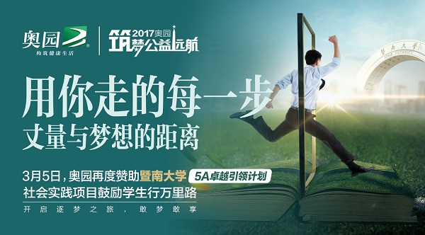 通過贊助暨南大學社會實踐活動,奧園希冀大學生能加深對傳統(tǒng)文化的了解,體味中華民族傳統(tǒng)文化的獨特魅力,增強文化自信心和自豪感,在實踐中探尋中國夢。