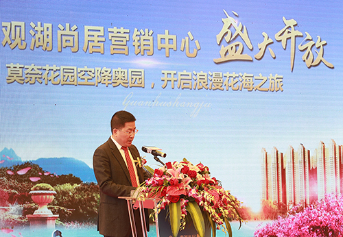 在營銷中心開放典禮上,奧園佛山片區副總經理宋輝為本次盛典發表致辭,對廣佛各大媒體、銀行等各界朋友對項目的支持與關心表示感謝,并表示將秉承奧園“構筑健康生活”的品牌理念精心打造奧園觀湖尚居項目,為佛山南海的經濟繁榮、城市發展做出更大的貢獻。