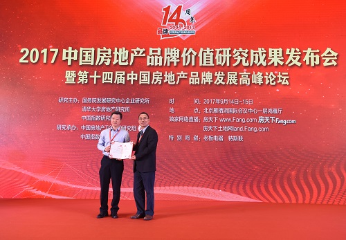 (2017年9月14日——北京)9月14日,由國務院發展研究中心企業研究所、清華大學房地產研究所、中國指數研究院聯合主辦的“2017中國房地產品牌價值研究成果發布會”,在2014年APEC亞太經合組織領導人非正式會議會址——北京雁棲湖國際會議中心隆重召開。本次活動眾多知名房企高層、行業專家學者、權威媒體人士齊聚一堂,共襄盛舉。奧園商業地產集團再獲“2017中國商業地產公司品牌價值TOP10”殊榮,進一步彰顯企業品牌影響力和綜合實力。