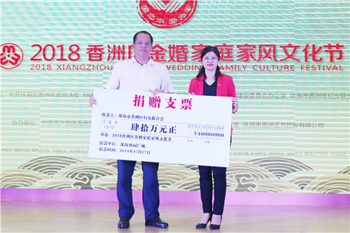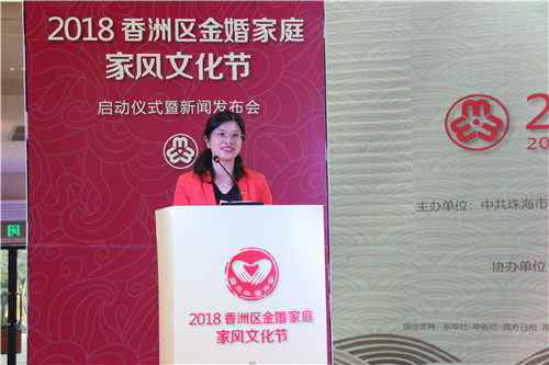 (2018年10月17日——珠海)10月17日,“國之本 愛為家”2018珠海香洲區首屆家庭家風文化節在珠海奧園廣場啟動。珠海市委政法委專委姜鐵鈞,香洲區委副書記、政法委書記劉繼漢,區委常委、組織部長陳靜,副區長、公安分局局長、區平安辦主任鄭木舜,區婦聯主席黃芳,奧園集團黨委副書記、紀委書記林莉等領導及來自拱北、前山等各鎮街道8對金婚伉儷代表,社會各界人士及媒體記者共計100余人出席。儀式上,奧園向區婦聯捐贈40萬元,以弘揚家庭美德,傳播正能量。