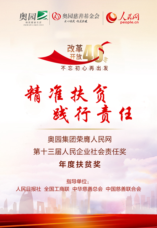 作為黨中央權威媒體、最具影響力的年度企業社會責任活動,本屆活動主題為“改革開放40年 不忘初心再出發”,其中“年度扶貧獎”旨在評選在推動中國社會進步和發展,履行社會責任等方面做出杰出貢獻的優秀企業。此次奧園榮膺該獎,意味著社會各界對奧園履行社會責任的充分肯定。