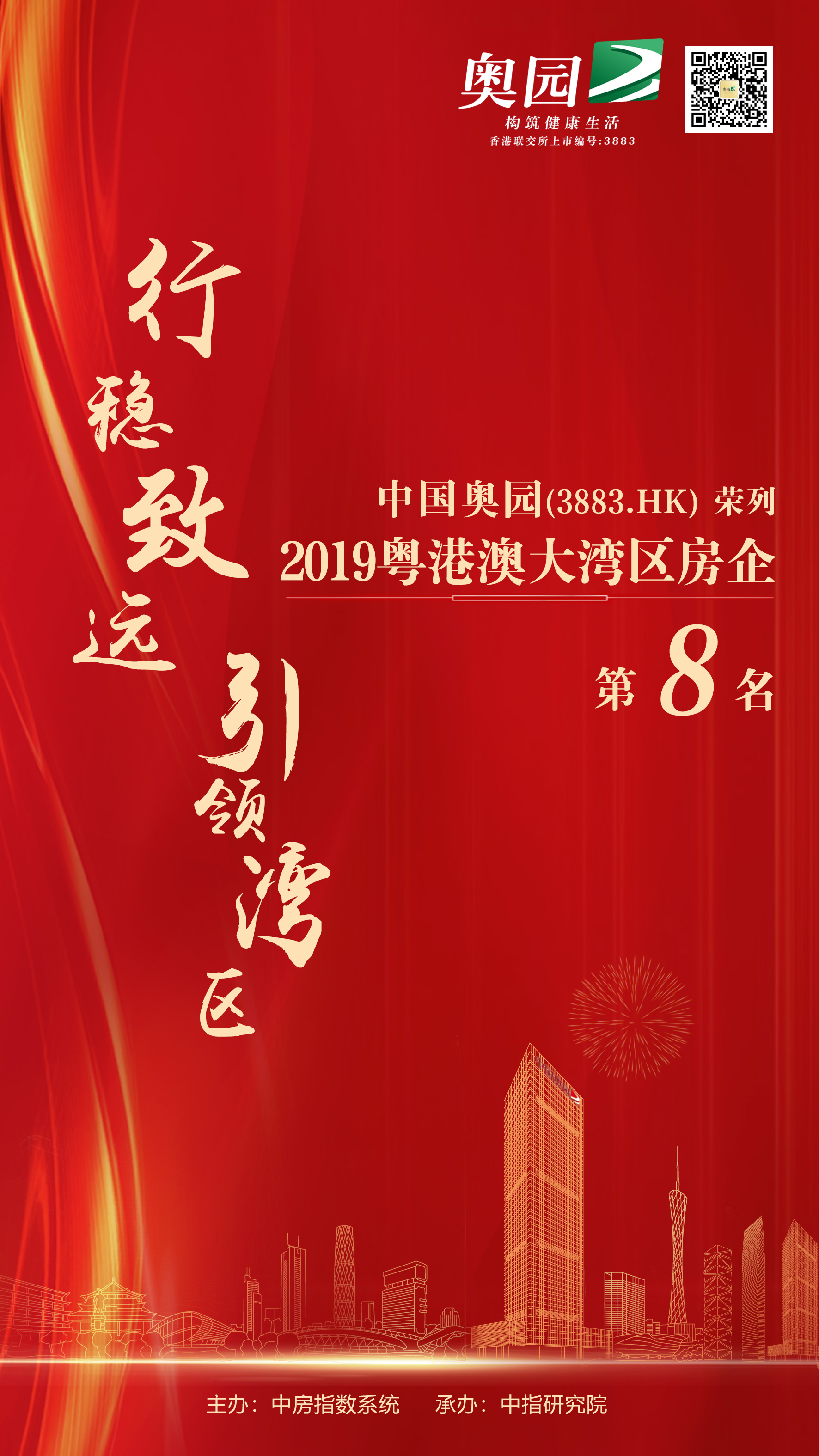 中國奧園榮膺2019粵港澳大灣區房企八強