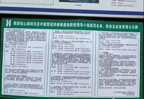 在具體措施方面,四川區域公司各個項目設置施工大門實名通道和檢測崗位,強化實名制管理,并建立項目防疫管理公示牌,明確人員責任。