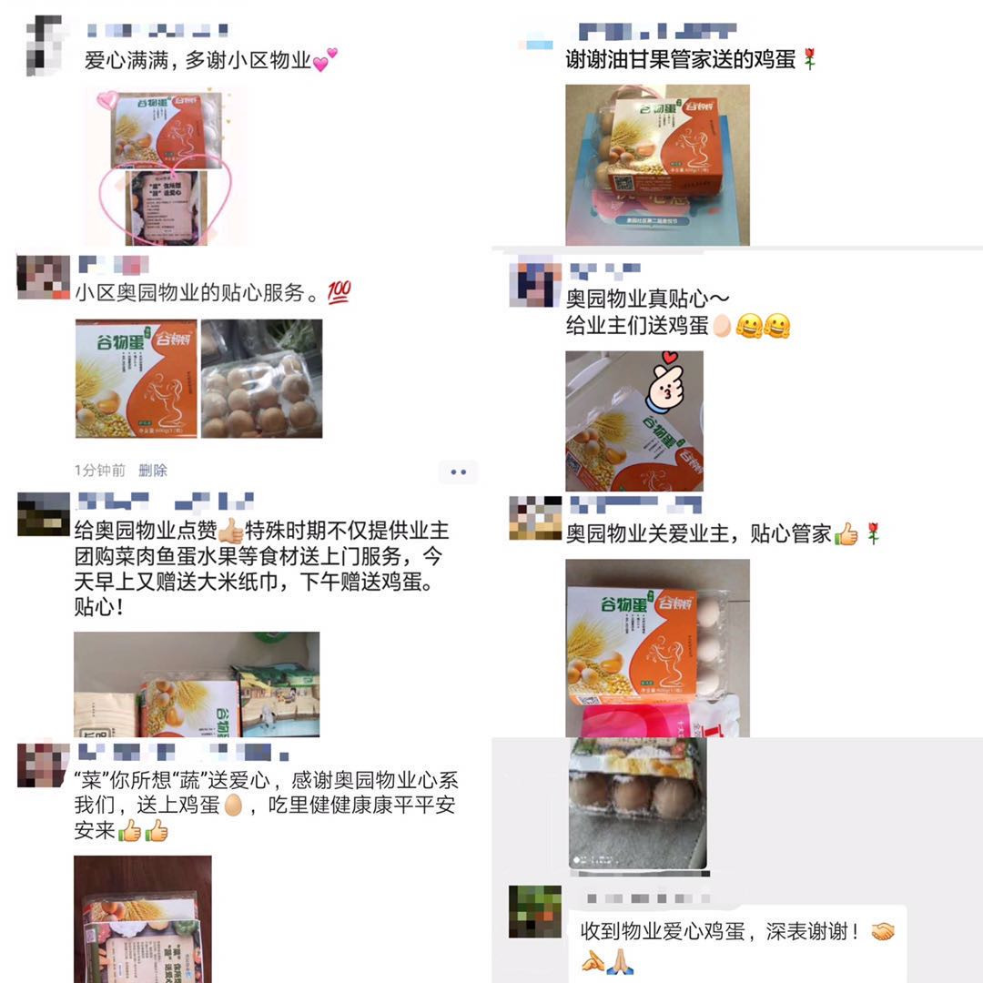 該批谷物雞蛋在一家愛心冷鏈配送企業(yè)的幫助下順利配送至華南區(qū)域各奧園社區(qū)中,隨后,各華南區(qū)域奧園社區(qū)陸續(xù)開展“菜你所想,蔬送愛心”專項活動,為受疫情影響在家中隔離的業(yè)主們帶去一個個溫暖驚喜——由各社區(qū)悅管家將愛心雞蛋分批打包好并免費(fèi)配送至每位業(yè)主手中。