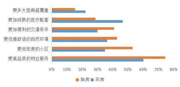 調查分析顯示,在購房者和換房者對新居所的要求中,品質居住成為為關鍵詞。有近半受訪者傾向于選擇居住環境更舒適的社區,還有六七成的人看重高品質物業服務。