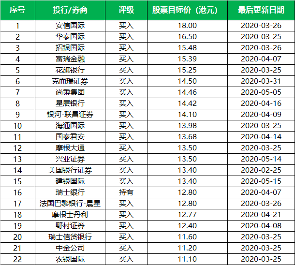 5月14日-15日,知名大行興業(yè)證券和建銀國際陸續(xù)發(fā)布研報首次覆蓋中國奧園集團股份有限公司(股票代號:3883),予以“買入”評級,分別設定目標價為13.5和13.4港元。