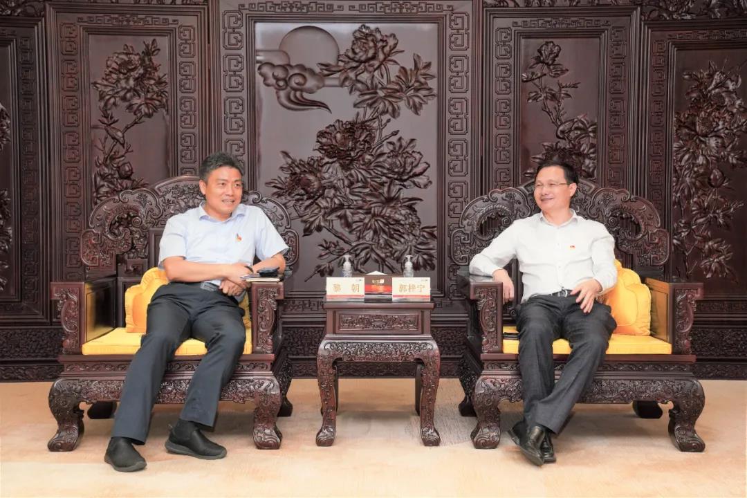 中國奧園集團黨委書記、總裁郭梓寧(右)與農業銀行廣州分行行長黎朝(左)交流座談