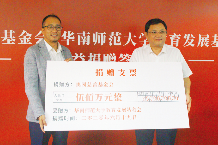 6月19日下午,中國奧園集團與華南師范大學在石牌樓校區就支教公益捐贈舉行簽約儀式,奧園慈善基金會本次共捐贈500萬元用于支教活動。中國奧園集團執行董事、營運總裁、地產集團總裁馬軍一行與華南師范大學校長王恩科等院校領導共同出席儀式。