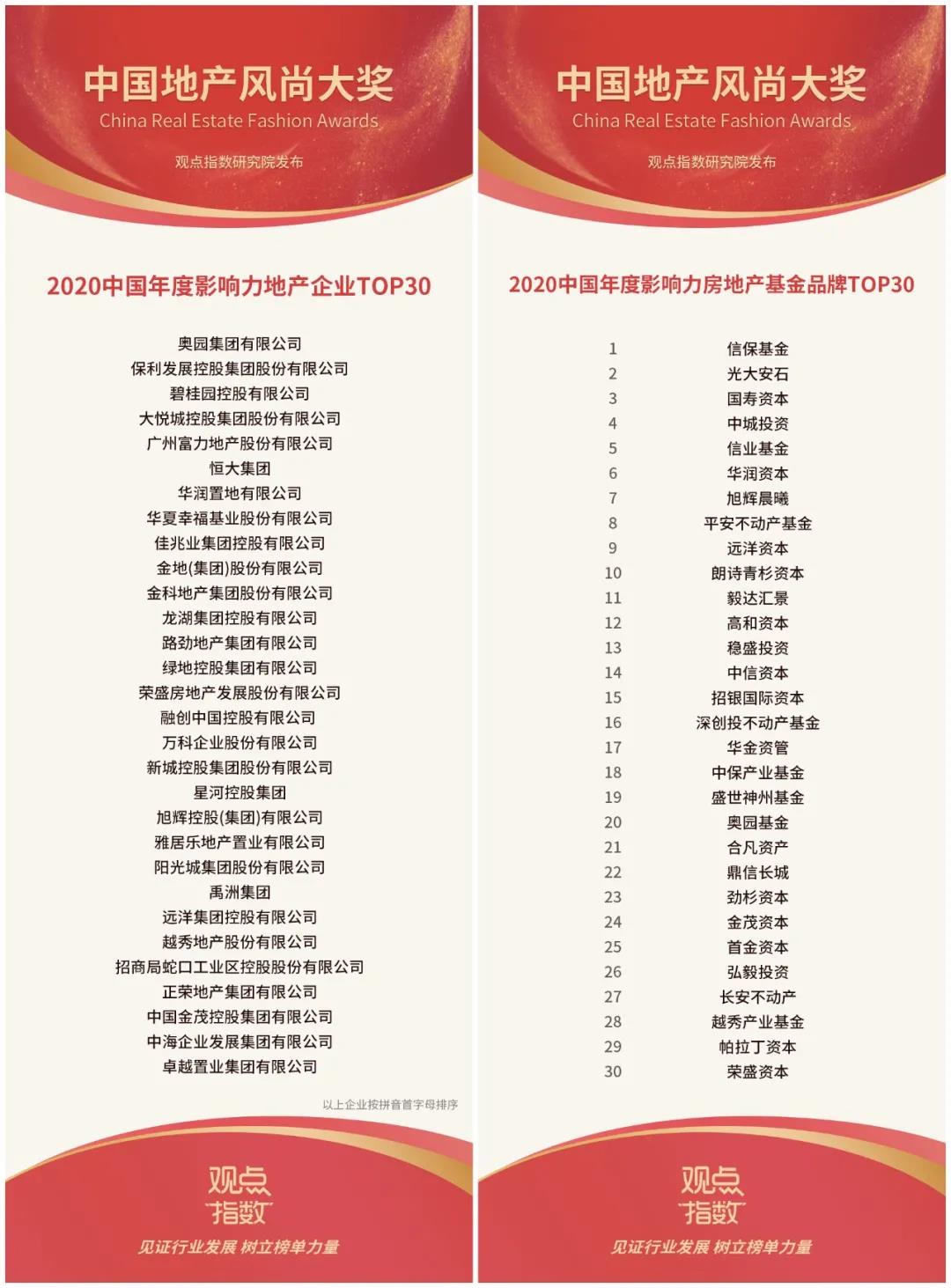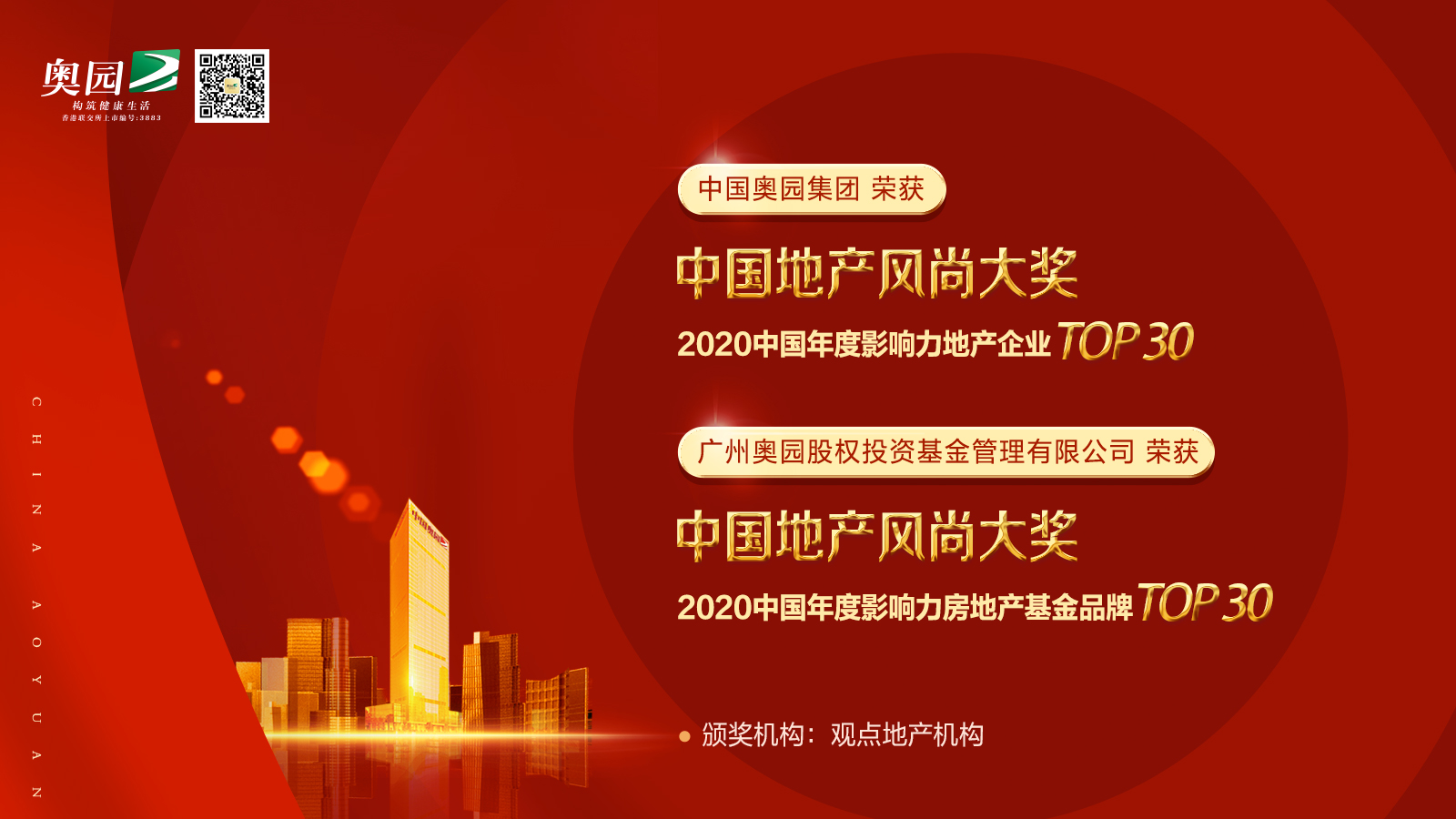 同時,作為中國奧園旗下專注于房地產私募股權投資領域的奧園基金亦獲評“ 2020中國年度影響力房地產基金品牌TOP30”稱號。