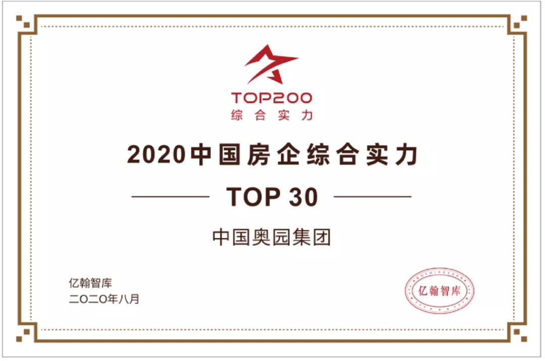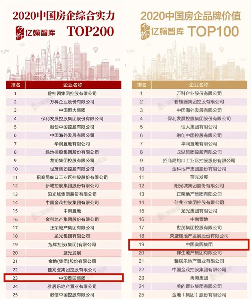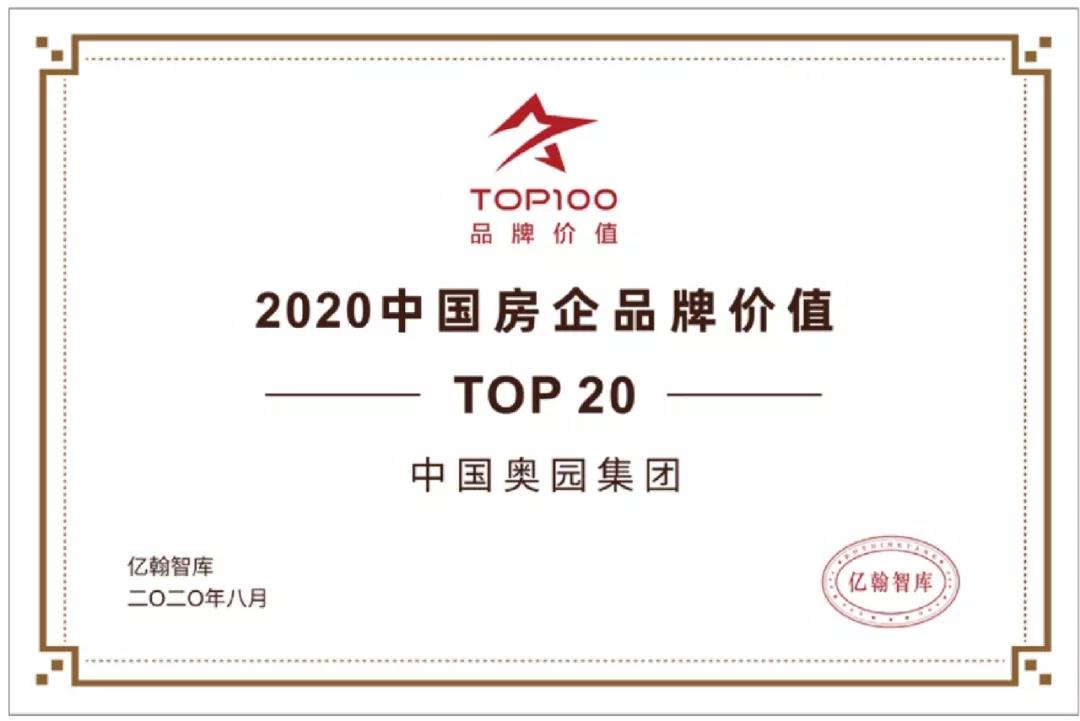 8月19日,由億翰智庫舉辦的中國房企百強峰會在上海召開,公布了“2020中國房企綜合實力TOP200企業研究”結果。中國奧園憑借強勁的綜合實力和良好的客戶口碑,一舉攬下“中國房企綜合實力第23名”“中國房企品牌價值第19名”“中國房企商業物業價值第5名” 三項大獎,同時榮登“2020中國房地產企業城市更新領域十強”“中國房地產企業雇主品牌十五強”“中國商業地產企業創新性五強”等九項子榜單。