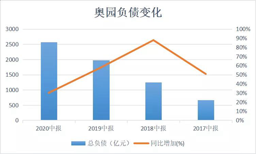 從歷年增長看,隨著規(guī)模的增長,奧園的負債有所增長,這也是市場最關(guān)心的問題。就2020年中報顯示,奧園總負債為2564.93億,同比增加30%,而2018年-2019年,總負債同比增加了59.93%。相比歷史數(shù)據(jù),奧園的負債金額增速是在放緩的,這無疑是一個正面的信號。