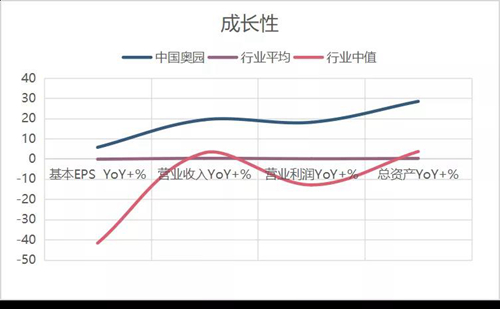奧園的高增長不是近一兩年才開始的。2015-2019這5年間,奧園總營業(yè)額的復合平均增長率為51.58%,毛利潤復合年均增長率為54.36%,歸母凈利潤復合年均增長率為50.82%,三者復合年均增長率均超過50%。另外奧園的成長性也超過同行,各項盈利指標均超過行業(yè)平均值。