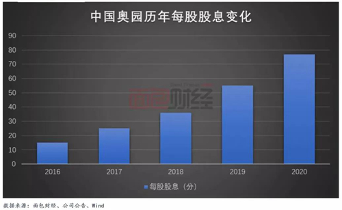中國奧園2020年擬派發末期股息每股人民幣66分以及特別股息每股人民幣11分,合計派息金額達到每股人民幣77分(相當于每股91.5港仙),同比增長40%。按照公司3月29日收盤價7.63港元/股進行測算,股息率達到11.99%。