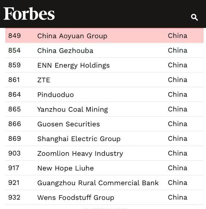 躍升303位!中國奧園躋身福布斯全球企業1000強