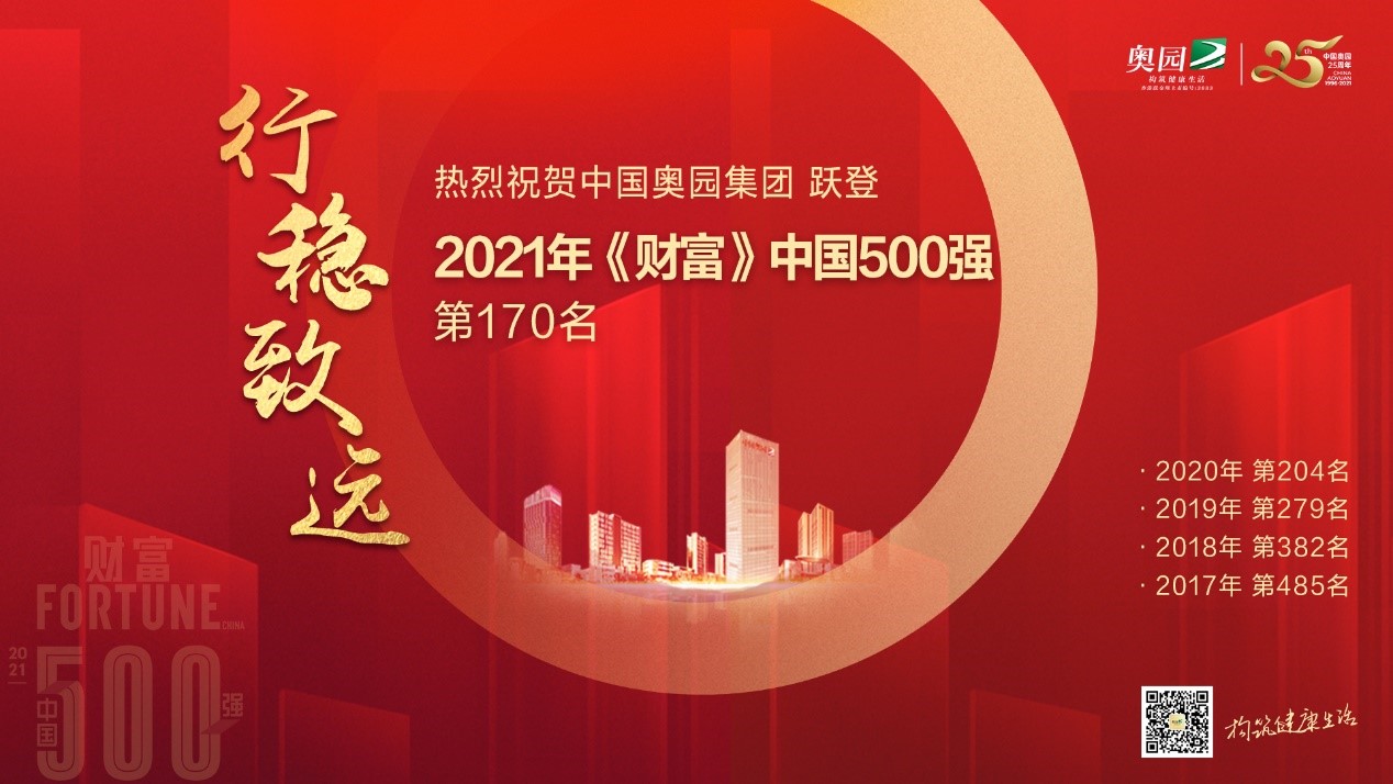 2021《財(cái)富》中國(guó)500強(qiáng)揭榜 中國(guó)奧園排名五連升 榮列第170名