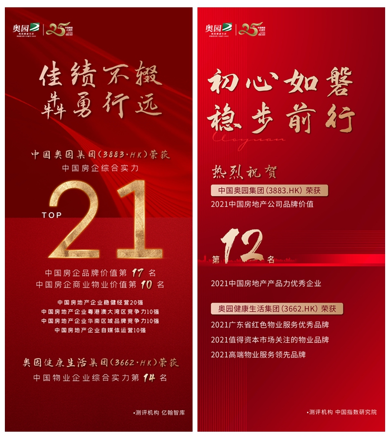 一日攬獲多項(xiàng)大獎(jiǎng)!中國奧園躍登房企綜合實(shí)力第21名