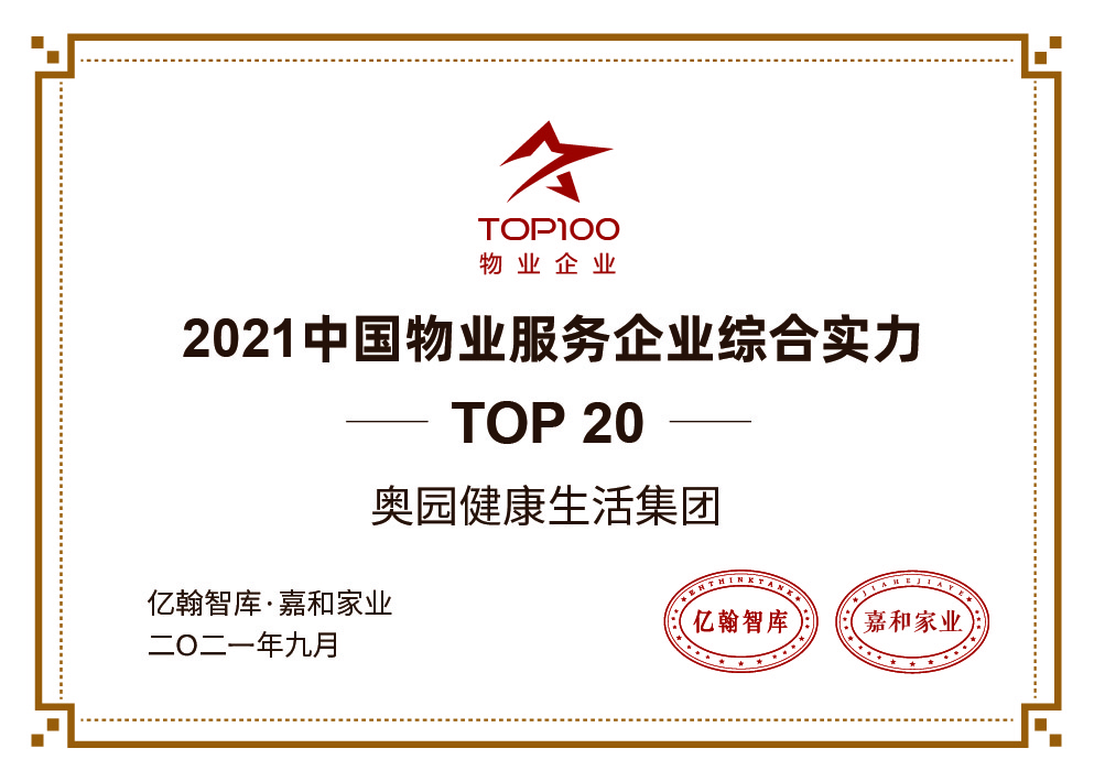 15日,億翰智庫舉辦2021CRS中國房地產(chǎn)業(yè)戰(zhàn)略峰會(huì),發(fā)布中國房企綜合實(shí)力及品牌價(jià)值研究成果,中國奧園集團(tuán)躍居2021中國房企綜合實(shí)力第21名,穩(wěn)居行業(yè)前30強(qiáng)。此外,還獲得了“中國房企品牌價(jià)值”第17名、“中國房企商業(yè)物業(yè)價(jià)值”第10名、“中國房企穩(wěn)健經(jīng)營(yíng)二十強(qiáng)”、“中國房企粵港澳大灣區(qū)競(jìng)爭(zhēng)力十強(qiáng)”、“中國房地產(chǎn)企業(yè)自媒體運(yùn)營(yíng)十強(qiáng)”、“中國房企華南區(qū)域品牌競(jìng)爭(zhēng)力十強(qiáng)”獎(jiǎng)項(xiàng)。而奧園健康獲得2021中國物業(yè)企業(yè)綜合實(shí)力第14名等多項(xiàng)榮譽(yù)。