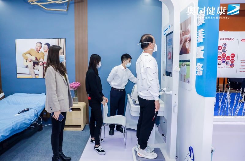 在展廳內,悅服務及高端服務區向觀眾展示了奧園健康對物業服務價值與內涵的持續探索創新;社區團購區線上線下聯合,創新展示供應生態鏈,觀眾掃碼進入小程序即可下單大量優質商品。康養體驗區的多功能護理床、健康體檢一體機與“奧悅家”6A智慧社區的智能屏和可視對講機等設備更是吸引了眾多觀眾親身體驗,感受前沿智能的健康服務。此外,現場設置了網紅打卡點與“開啟智慧生活”互動區,以“場景+體驗”模式,點燃活動氛圍。