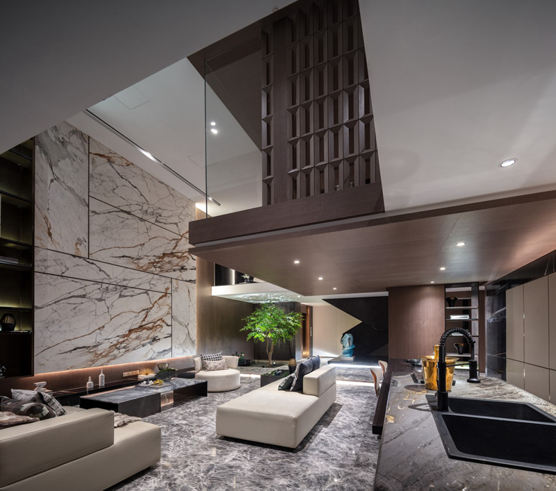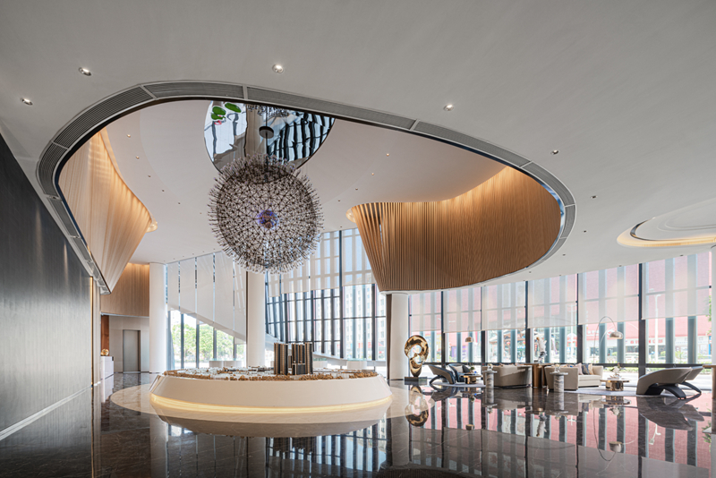 ●珠海奧園學苑壹號以“少即是多”為設計理念,取山之島、水之形進行空間疊合,與自然共生、渾然一體,以藝術為質(zhì)感,將整個場所賦予靜止的光線,展現(xiàn)靈動奢居的生活場景。項目曾獲得2021年金盤獎年度最佳預售樓盤、年度最佳預售樓盤、年度最佳售樓空間,最佳示范區(qū)設計獎。