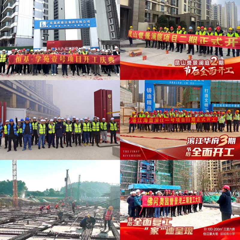 節后開工首日起,奧園多城市在建項目紛紛第一時間召集多方集體會商,組織召開開工動員會、復工儀式等,專項推進復工復產,合理安排建設計劃,逐一落實勞動力、機械設備和周轉材料,并按照進度計劃要求明確節點、倒排項目工期、夯實責任到人。截至目前,廣州學苑壹號、東莞翡翠瀾灣、湛江濱江一號、佛岡譽景灣、昆山譽景瀾庭、青島翡翠云城、南寧棠悅府、重慶悅府、蚌埠譽府、西安璞樾ONE、成都麓語ONE等近30個項目已先后開啟“忙碌”模式,有序按照生產計劃要求落實落地,推動項目復工復產,以實際行動沖刺全年交付目標。
