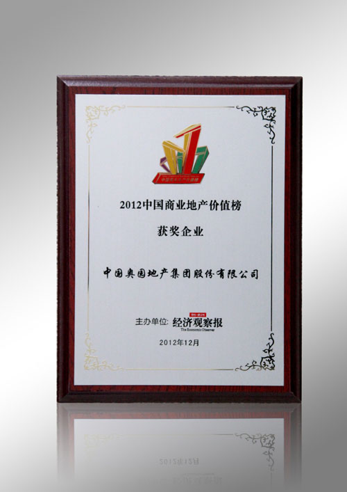 中國奧園地產(chǎn)集團(tuán)榮登“2012年度商業(yè)地產(chǎn)價值榜”