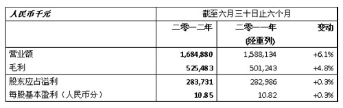 回顧期內,集團的營業額為人民幣16.8億元,較二零一一年同期增加6.1%。受惠于「商住雙線」發展策略,在交付項目中,商業及別墅的收入比例上升至79.4%(二零一一年同期:72.4%),交付物業的平均售價為約每平方米人民幣10,621元(二零一一年同期:人民幣11,012元)。毛利增長4.8%至人民幣5.3億元,而毛利率亦維持在31.2%的穩定水平。股東應占溢利達人民幣2.8億元,同比上升0.3%。每股基本盈利為人民幣10.85分(二零一一年同期:人民幣10.82分)。