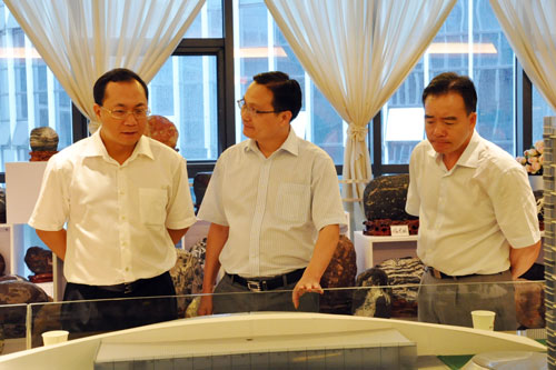 (2012年7月25日——廣州)番禺區(qū)委書記、區(qū)人大常委會主任盧一先在區(qū)委常委、區(qū)委辦主任簡錫波,副區(qū)長麥潔萍以及區(qū)相關(guān)部門和橋南街相關(guān)領(lǐng)導(dǎo)陪同下冒雨前往奧園廣場開展調(diào)研工作。中國奧園地產(chǎn)集團(tuán)行政總裁郭梓寧先生、奧園番禺片區(qū)公司總經(jīng)理楊建鵬先生等人接待了盧書記一行并向盧書記介紹了奧園廣場、奧園養(yǎng)生廣場的規(guī)劃設(shè)計、工程進(jìn)度、招商成果以及業(yè)態(tài)定位等情況。