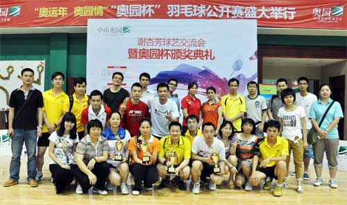 (2012年6月5日——中山)適逢四年一度的奧運年,奧園集團在全國多座城市同時開展“奧運年·奧園情”系列活動,倡導運動健康精神,傳揚低碳健康生活宣言!作為“奧運年·奧園情”的最后一站,6月2日中山奧園舉辦了“奧園杯”羽毛球公開賽頒獎典禮暨“奧園·星辰”新品發布會。世界冠軍謝杏芳親臨現場為獲勝者頒獎,并教授羽毛球的經典技戰術。廣大奧園業主與世界冠軍“零”距離接觸,為“奧運年·奧園情”又添上濃墨重彩的一筆。