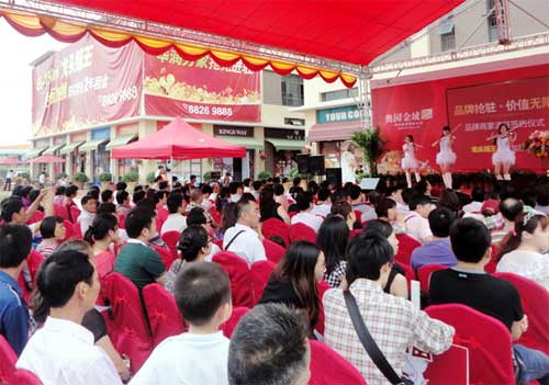 中山片區總經理楊建湘先生為活動致辭,展現了中國奧園地產集團商住雙線發展成果,介紹了奧園·金域項目優勢與發展前景。同時,以華潤萬家等為代表的品牌企業也現場闡述了強勢進駐奧園·金域的理由。華潤萬家陳永安經理認為,奧園金域休閑生活商務區周邊云集三大專業市場數千商家及11個成熟社區近15萬人口,在消費領域蘊涵著巨大的商機。華潤萬家搶先占領奧園金域休閑生活MALL共謀發展。