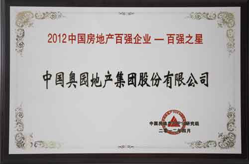 中國(guó)奧園地產(chǎn)集團(tuán)榮獲“2012中國(guó)房地產(chǎn)百?gòu)?qiáng)企業(yè)”稱號(hào)