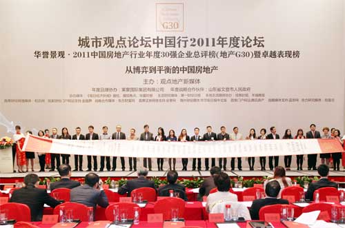 由觀點(diǎn)地產(chǎn)新媒體主辦的中國(guó)房地產(chǎn)行業(yè)年度30強(qiáng)企業(yè)總評(píng)榜(G30)旨在表彰那些無論是處于什么經(jīng)濟(jì)形勢(shì)及政策調(diào)控下都持續(xù)發(fā)展的企業(yè),得獎(jiǎng)名單倍受相關(guān)行業(yè)人士關(guān)注。榜單指標(biāo)體系由運(yùn)營(yíng)、財(cái)務(wù)、品牌、管理四大指標(biāo)體系構(gòu)成。12月15日在廣州召開的“城市觀點(diǎn)論壇中國(guó)行2011年度論壇”觀點(diǎn)地產(chǎn)新媒體正式發(fā)布“2011中國(guó)房地產(chǎn)行業(yè)年度30強(qiáng)企業(yè)總評(píng)榜(地產(chǎn)G30)暨卓越表現(xiàn)榜”榜單,奧園憑借鮮明獨(dú)特的品牌特色榮獲“2011年度最佳品牌建設(shè)”,并且旗下的南沙奧園和奧園養(yǎng)生城二個(gè)項(xiàng)目作為典范項(xiàng)目安排為此次年會(huì)參會(huì)代表的參觀學(xué)習(xí)項(xiàng)目。翌日,有來自房地產(chǎn)、建筑、金融等相關(guān)行業(yè)的近100多位專業(yè)人士參觀了南沙奧園和奧園養(yǎng)生城,在以“低碳、生態(tài)、養(yǎng)生”為主題的山頂海景別墅示范區(qū),嘉賓們?cè)诹w慕奧園地產(chǎn)享受南沙發(fā)展大利好的同時(shí),也對(duì)奧園地產(chǎn)獨(dú)具前瞻性的發(fā)展戰(zhàn)略表達(dá)了欽佩之意。