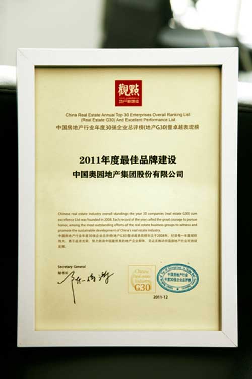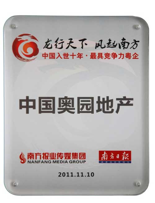 中國(guó)奧園地產(chǎn)集團(tuán)又獲殊榮:榮膺“入世十年·最具競(jìng)爭(zhēng)力粵企業(yè)”稱號(hào)和“2011年度最佳品牌建設(shè)”