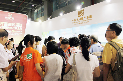 由于產品豐富、價格適中、服務周到,奧園的展位前一直人頭攢動,現場咨詢登記的客戶絡繹不絕。為了增強吸引力,參展的項目還增加了現場解說人員和看樓班車,以滿足意向客戶的看房需求。
