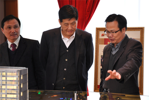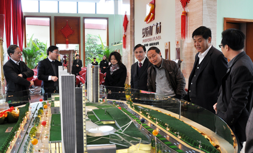 (2011年02月19日——廣州)番禺區委書記、區人大常委會主任譚應華先生在番禺區委常委、區委辦主任陳德俊先生和副區長黎偉堂先生的陪同下,冒著蒙蒙細雨來到奧園廣場調研、考察。中國奧園地產集團董事局主席郭梓文先生、副主席兼總裁郭梓寧先生等熱情接待了譚書記一行、并就奧園近年來的發展及奧園廣場項目的規劃設計、工程進度、業態規劃、招商成果等情況向譚書記等領導做了詳細匯報。