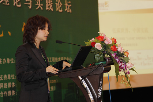 中國奧園地產集團作為行業的低碳先行者,邀請作為企業代表發言,研發設計中心總監張梅女士在會上做了《奧園低碳人居健康生活探索之路》演講,介紹了奧園構筑低碳健康生活的理念、實踐成果和思考。