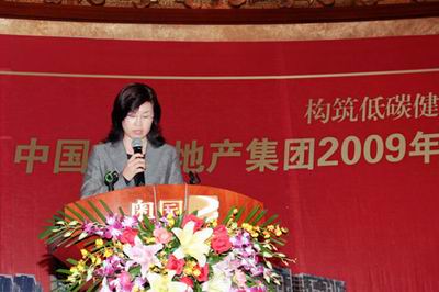 首先舉行的是年度總結大會,常務副總裁辛珠女士受集團董事局郭主席委托,作《2009年總結報告》。辛總表示,奧園在國內外經濟形勢復雜多變的2009年,果斷地抓住機會,不僅在銷售面積和銷售收入方面,超額完成年初確定的目標任務,同比增長100%以上;在制度建設、經營能力、融資并購、成本管理等諸多方面得到了很大的提升和完善。