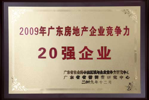 中國奧園地產(chǎn)集團(tuán)榮獲“2009年度廣東房地產(chǎn)企業(yè)競爭力20強(qiáng)”稱號