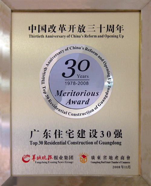 中國奧園地產集團榮獲“改革開放30年·廣東住宅建設30強”稱號