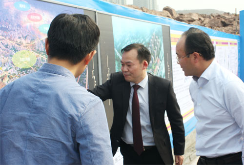 肖總向石區(qū)長一行介紹現(xiàn)場情況