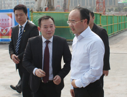 (2013年3月11日——重慶)重慶市九龍坡區(qū)石繼東區(qū)長、何勇副區(qū)長、周進副區(qū)長、九龍坡區(qū)建委代江副主任、談臨凌副主任等領(lǐng)導(dǎo)一行蒞臨重慶奧園·國際城施工現(xiàn)場調(diào)研指導(dǎo)。奧園集團總裁助理兼重慶片區(qū)總經(jīng)理肖毅先生向石區(qū)長一行匯報了項目方案及開發(fā)計劃,重慶片區(qū)經(jīng)營班子接待了石區(qū)長等領(lǐng)導(dǎo)一行。