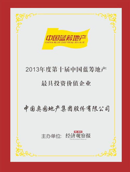 而在6月26日北京舉行的2013年度第十屆中國(guó)藍(lán)籌地產(chǎn)年會(huì)上,奧園集團(tuán)獲評(píng)為“最具投資價(jià)值企業(yè)”。
