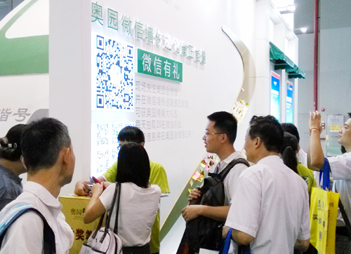 房博會上,奧園展位以簡潔時尚的形象,全面突出展示了各核心項目,展位別出心裁以地鐵指示站牌、和諧號機車形象為主要設計元素,凸顯了奧園品牌內涵和項目區位優勢。同時還積極采用新媒體推廣手段,展位現場設立了“奧園微信墻,傳遞健康正能量”微信互動區,關注“奧園會”及各項目公司微信公眾平臺。