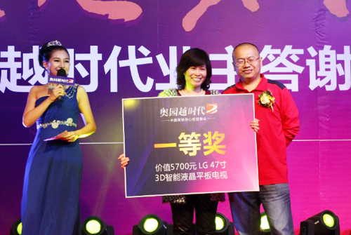 (2013年11月24日——廣州)為感謝廣大業(yè)主對奧園越時(shí)代的大力支持和一直以來對奧園品牌的厚愛,奧園越時(shí)代項(xiàng)目特在廣州長隆國際會(huì)展中心A廳舉辦了隆重的業(yè)主答謝晚宴。本次答謝晚宴以“時(shí)代遠(yuǎn)見,名流盛宴”為主題,現(xiàn)場席開60圍,宴請600多名奧園越時(shí)代的業(yè)主及親友,全場座無虛席!現(xiàn)場賓客歡聚一堂,其樂融融,精彩的文藝演出、豐盛的獎(jiǎng)品更為整場晚宴增姿添彩,讓現(xiàn)場賓客盡享盛宴!