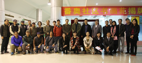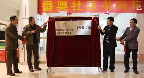 (2013年12月13日——廣州)在廣東省委組織部和番禺區委組織部關心支持下,番奧社區書畫苑暨廣州美術學院中國畫學院山水工作室校外寫生創作基地正式揭牌成立。廣東省委組織部農村組織處處長李康年,番禺區委常委、組織部部長周軍,廣州美術學院中國畫學院院長王大鵬教授,廣州美術學院中國畫學院副院長、山水工作室主任張彥教授,奧園集團黨委書記、總裁郭梓寧等領導參加了當天的活動。